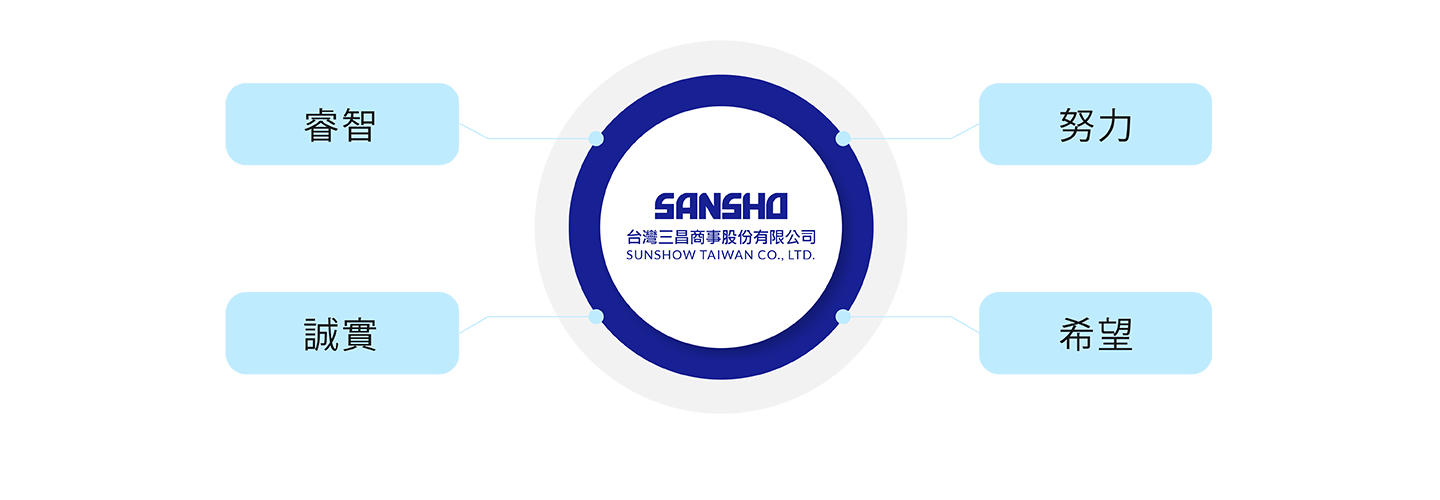 我們台灣三昌商事並不局限於既有現成的概念﹐而是不斷展望未來。 為了常保業界領先地位更是處處留心,時時吸取新知。再者我們處理任何事情都是誠實以待,凡事皆以與客戶保持信賴關係為第一考量,並且以共存共榮的精神,持續努力不斷迎接新的挑戰。